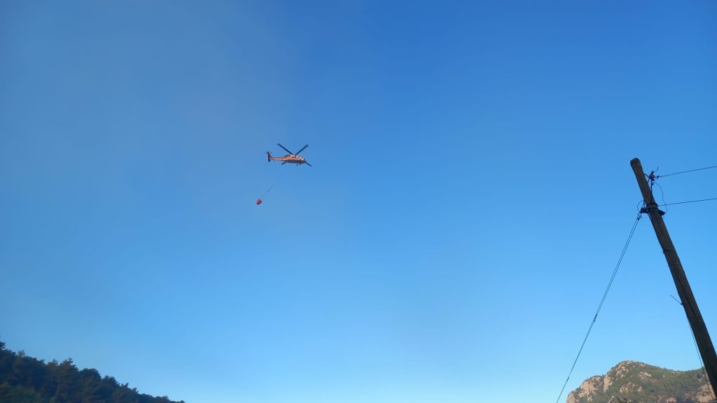 Muğla’nın Dalaman ilçesine bağlı Taşbaşı Mahallesi’nde dün (17 Ekim) akşam başlayan yangına, günün ilk ışıklarıyla birlikte havadan müdahale edilmeye başlandı.
