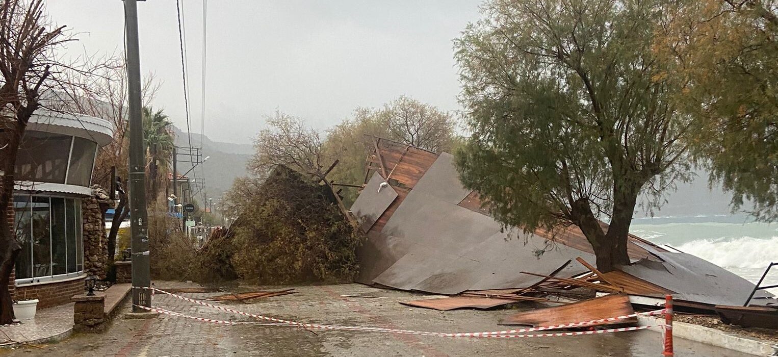 Muğla’da etkili olan fırtınadan dolayı Datça ilçesinde deniz kıyısındaki bir restoranın platformu, çatısı ile beraber çöktü. Muğla’nın Datça ilçesi Palamutbükü’nde sabah saatlerinde fırtına etkili oldu. Fırtına ile birlikte denizde yükselen dalgalar kapalı bir restoranın platformunun ayaklarına zarar verdi. Platform çatısı ile birlikte çöktü. Çökme sonucunda kimsenin yaralanmadığı öğrenilirken, işletmede maddi zarar oluştuğu bildirildi.