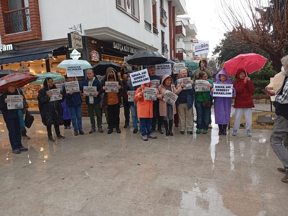 Dayanışma Datça ve BirGün Okur İnisiyatifi’nin çağrısıyla bir araya gelen BirGün okurları ve yurttaşlar, gazetecilere yyönelik baskılara ve Gazeteci İsmail Arı’nın tutuklanmasına karşı basın açıklaması gerçekleştirdi.