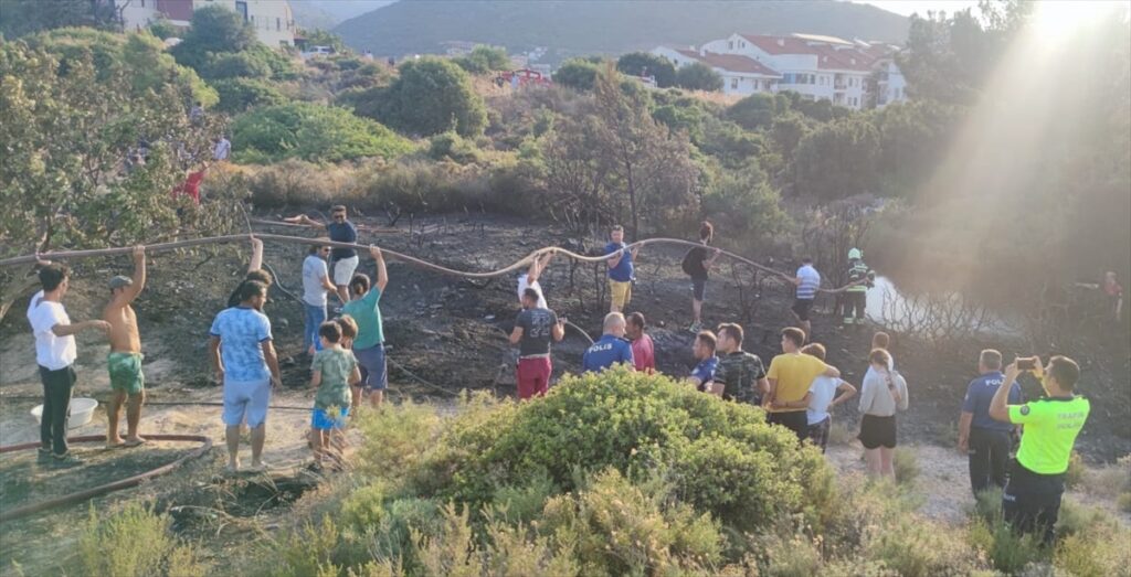 Muğla’nın Datça ilçesinde otluk ve makilik alanda çıkan yangın söndürüldü.