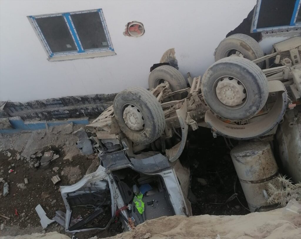 Ayrıca, beton mikserinin devrildiği sırada çarptığı binanın duvarının bir bölümünde de hasar oluştu.