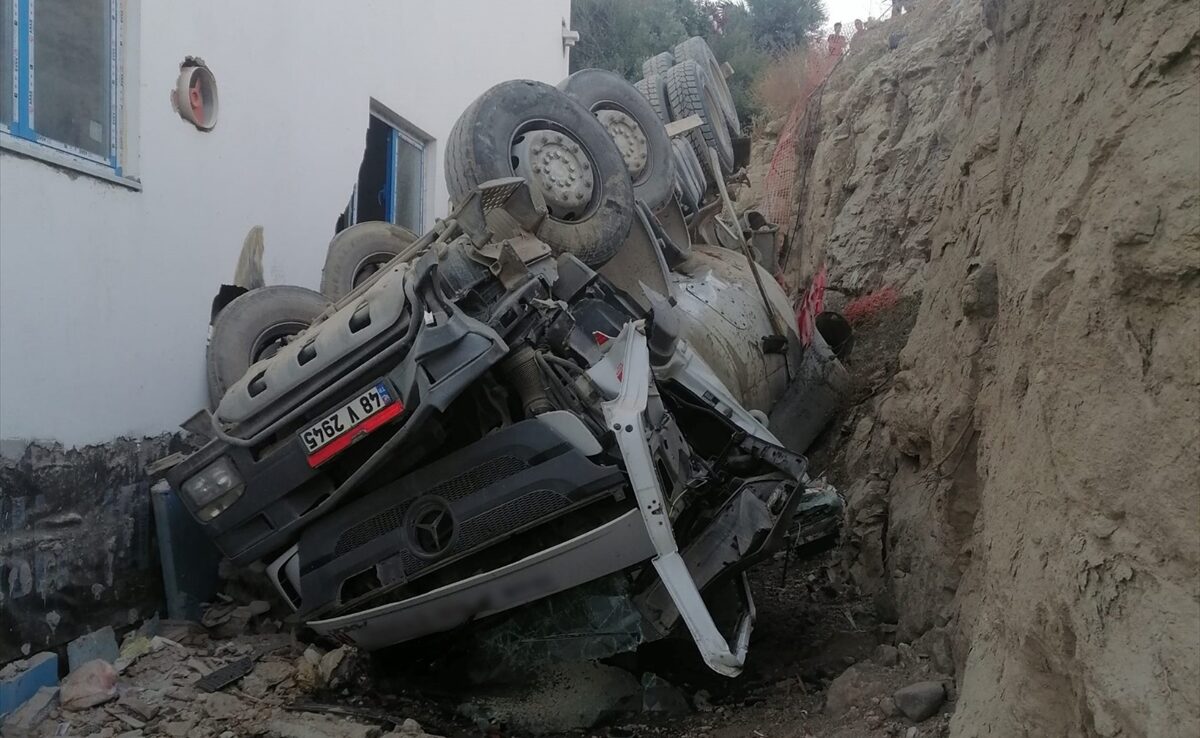 Ayrıca, beton mikserinin devrildiği sırada çarptığı binanın duvarının bir bölümünde de hasar oluştu.