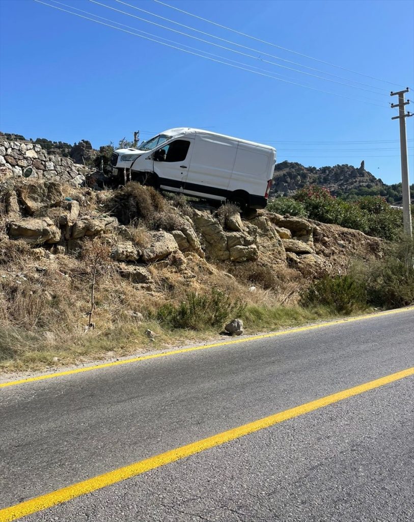 Muğla’nın Bodrum ilçesinde; aniden önüne çıkan yaban domuzuna çarpmamak için manevra yapan kamyonet; domuza çarparak yol kenarındaki kayalıklara çarptı.