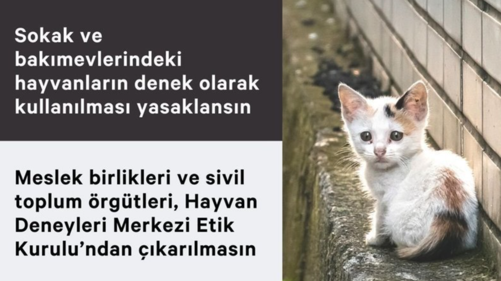 Ocak 2022’de Tarım ve Orman Bakanlığı’nın hazırladığı Yönetmelik (Hayvan Deneyleri Etik Kurullarının Çalışma Usul ve Esaslarına Dair Yönetmelik) taslağı da sokak ve bakımevlerindeki hayvanların denek olarak laboratuvarlara gönderilmesini yasaklamıyor.