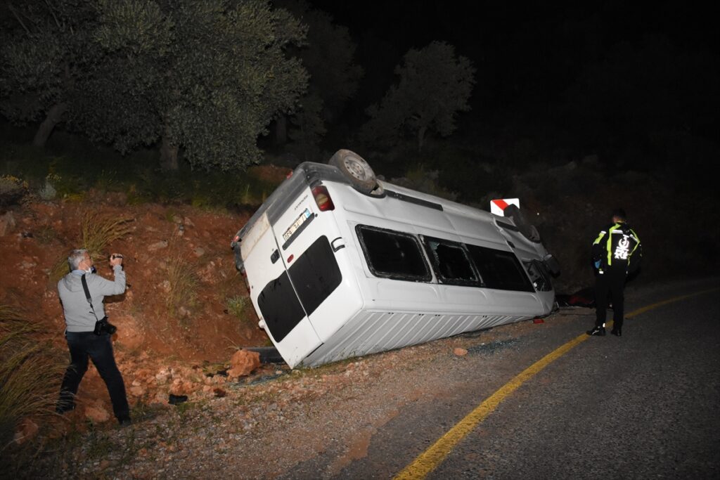 Muğla’nın Menteşe ilçesinde yer alan Yerkesik-Akbük kara yolunda düzensiz göçmenleri taşıyan minibüs yol kenarındaki toprak yığınına ve kaya parçalarına çarptıktan sonra devrildi.