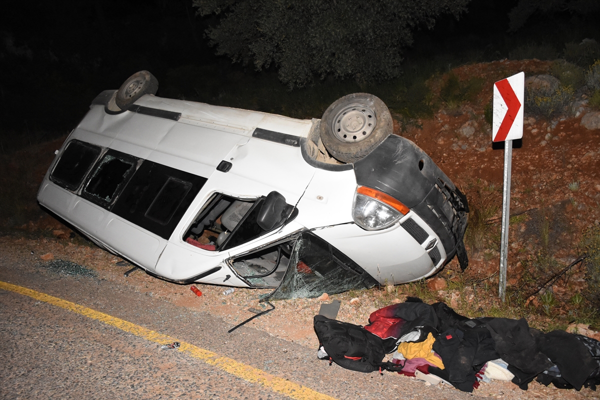 Muğla’nın Menteşe ilçesinde yer alan Yerkesik-Akbük kara yolunda düzensiz göçmenleri taşıyan minibüs yol kenarındaki toprak yığınına ve kaya parçalarına çarptıktan sonra devrildi.