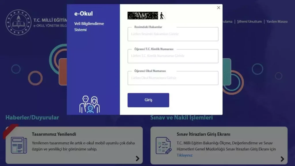 - e-okul.meb.gov.tr adresine tarayıcıdan giriş yapılır.