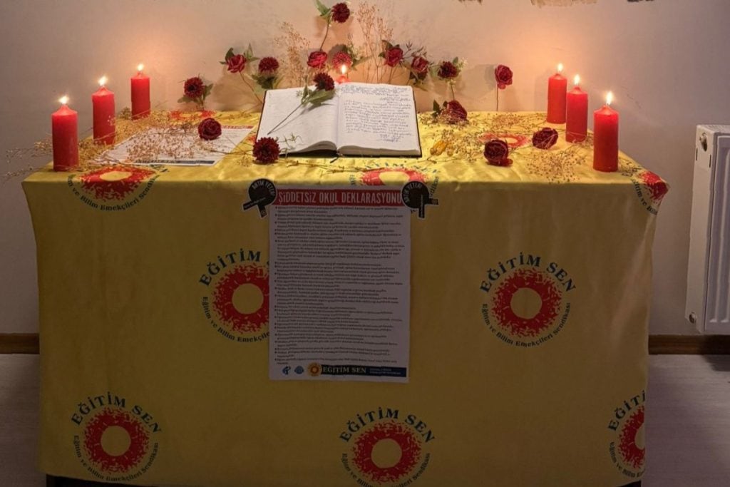 Eğitim ve Bilim Emekçileri Sendikası (Eğitim Sen) Muğla Şube Yürütme Kurulu, yurttaşları Muğla’nın Menteşe ilçesinde bulunan şube binasındaki deftere bir not bırakmaları için çağrıda bulundu.