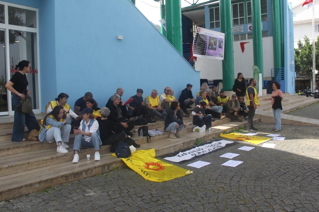 Fethiye Belediyesi Özer Olgun Kültür Merkezi önünde 11.00’de başlayan nöbet saat 13.00’e kadar devam etti.