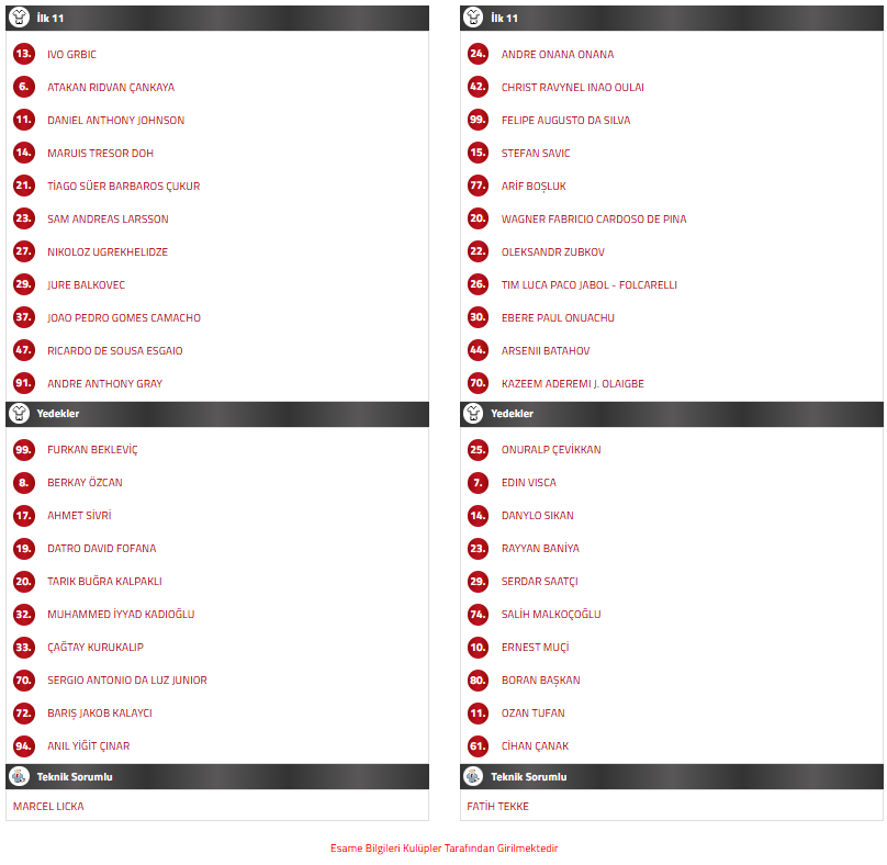 Gaziantep FK maçında sakatlanan Batagov son iki antrenmanda takımla çalıştı. Teknik Direktör Fatih Tekke’nin Batagov’u ilk 11’de görevlendirmesi bekleniyor. Sol bekte Arif Boşluk’un oynaması ve orta sahada Okay’ın yokluğunda Ozan Tufan’a forma verilmesi öngörülüyor. Hücum hattında ise Muçi’nin yedeğe çekilip Onuachu ile birlikte Felipe Augusto’nun görev alması planlanıyor.