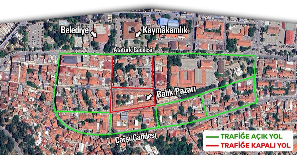 Çalışmalar kapsamında belirlenen bölgelerde yol ve altyapı düzenlemeleri yapılacağı ve bu süreçte balık pazarı etrafındaki sokakların çalışmalar süresince trafiğe kapatılacağı belirtildi.