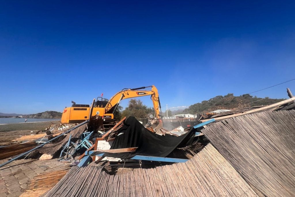 Fethiye Belediyesi ekipleri, bugün (8 Aralık) devletin hüküm ve tasarrufu altında bulunan alanlarla kıyı kenar çizgisi içerisinde yer alan kaçak yapıların yıkımına başladı.