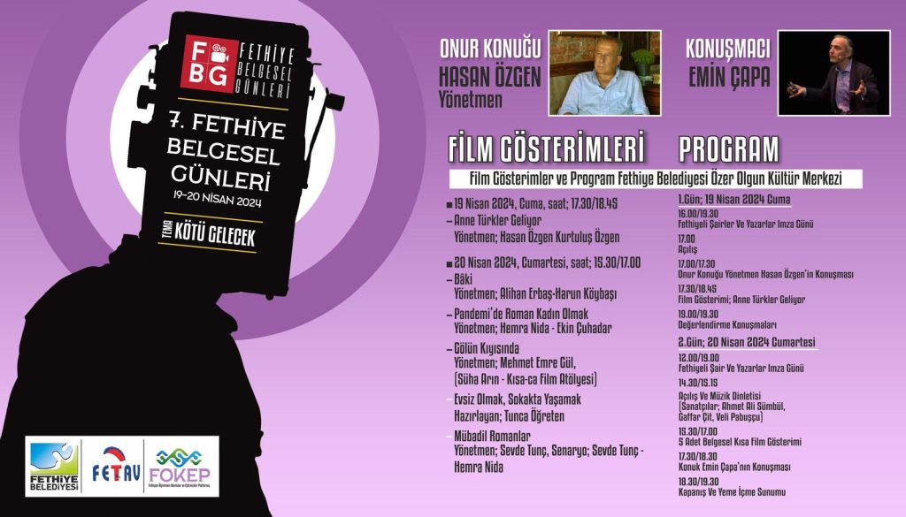 Fethiye Belgesel Günleri “Kötü Gelecek” teması ile 19 Nisan’da Fethiye Belediyesi Özer Olgun Kültür Merkezi’nde Fethiyeli izleyicilerle buluşacak. Festivalin bu yılki konuğu Hasan Özgen olacak.