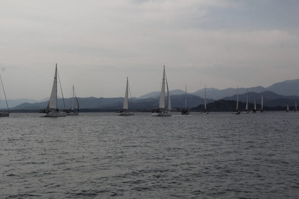Tekneler, dün (14 Mart) saat 16.00’da Çalış Plajı açıklarında toplanarak Karaot Plajı’na ulaştı.