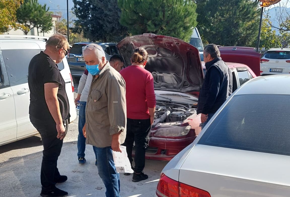 Muğla’nın Fethiye ilçesindeki Fethiye Devlet Hastanesi’nin otoparkındaki bir otomobilin motor kısmında henüz belirlenemeyen bir nedenle yangın çıktı.