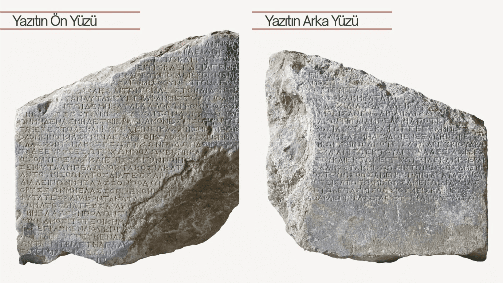 “Yazıtta; yıllık kira bedelleri, bu bedelin her 100 drahmilik miktarına karşılık 800 asma ve 40 incir fidanı dikme zorunluluğu ile her bir fidanın dikim derinliğine dair tarımsal talimatların yanı sıra, dönemin hukuki işleyişini yansıtan cezai şartlar ve tazminat hükümleri de yer alıyor.”