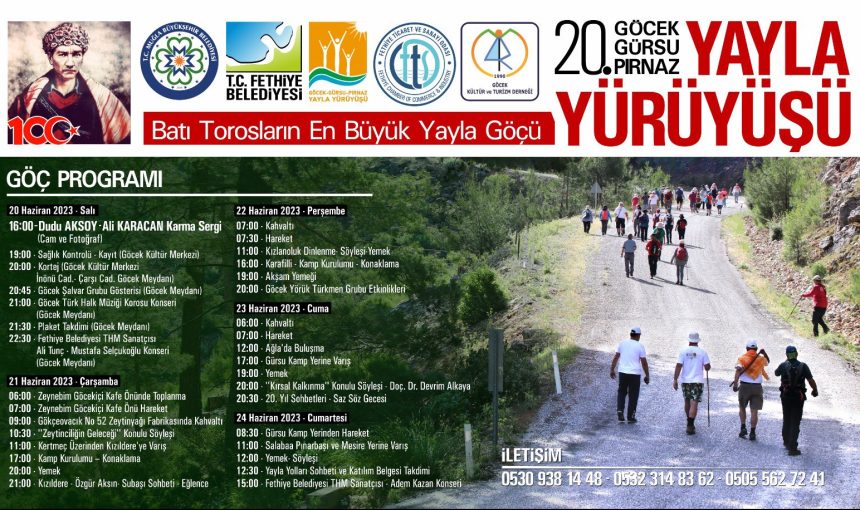 Fethiye Belediyesi, 20. Göcek-Gürsu-Pırnaz Yayla Yürüyüşü’nün yarın (20 Haziran 2023) başlayacağını duyurdu.