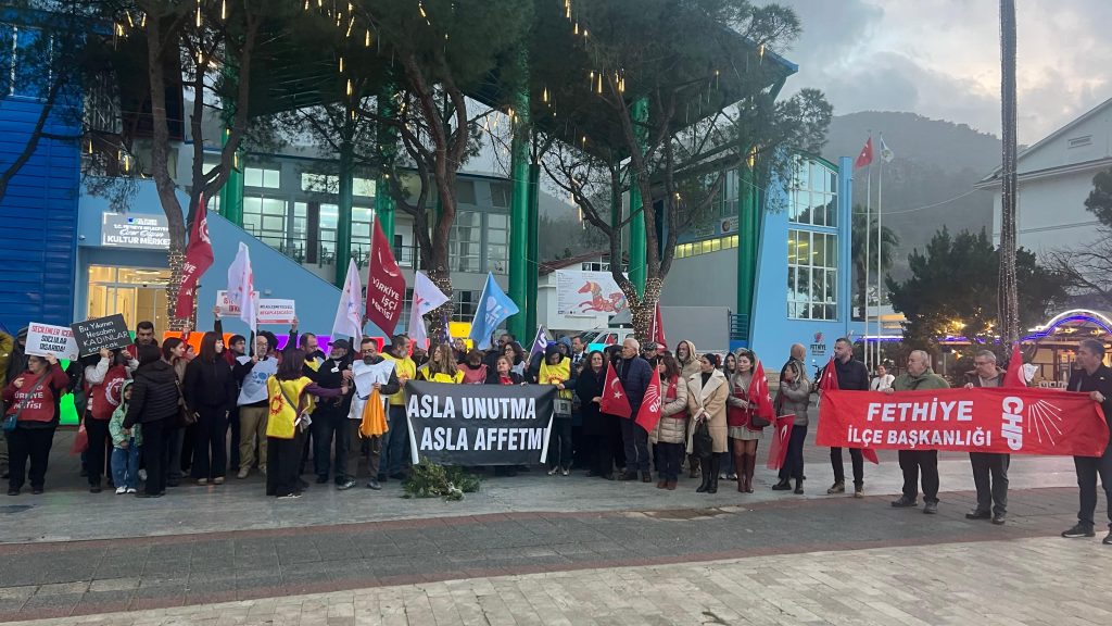 Muğla’nın Fethiye ilçesinde yurttaşlar, 6 Şubat 2023’te meydana gelen ve 11 ili etkileyen depremlerde hayatını kaybedenler için bir araya geldi. Fethiye Birleşik Mücadele Platformu ve Cumhuriyet Halk Partisi (CHP) Fethiye İlçe Başkanlığı basın açıklaması yaptı.