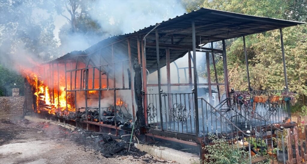 Bungalov ev yangının ardından kullanılamaz duruma geldi.