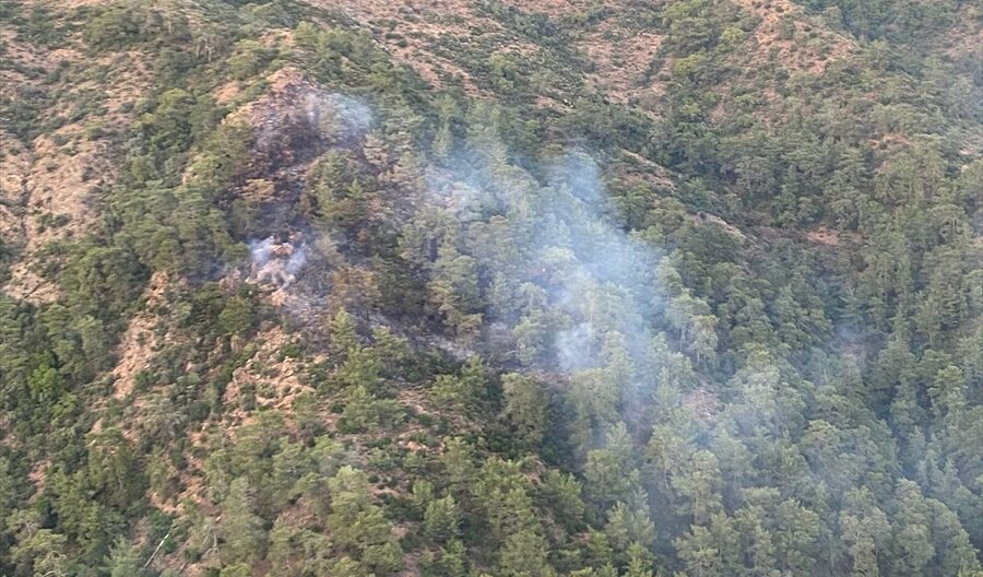 Bölgede yaklaşık 5 dönüm alanın zarar gördüğü öğrenilirken, soğutma çalışmalarının da devam ettiği belirtildi.