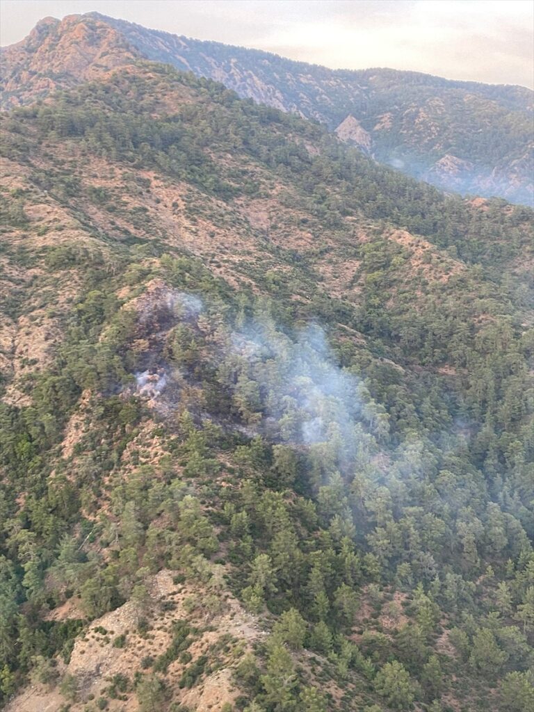 Bölgede yaklaşık 5 dönüm alanın zarar gördüğü öğrenilirken, soğutma çalışmalarının da devam ettiği belirtildi.