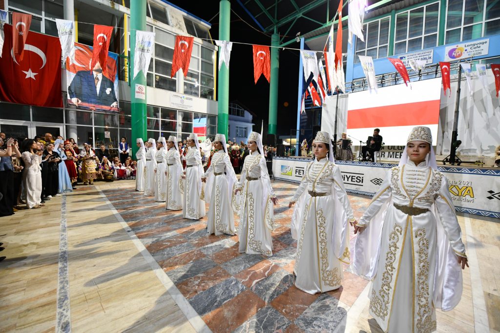 Fethiye Belediyesi’nin katkılarıyla düzenlenen Uluslararası Halk Oyunları Festivali, 9 Ekim Perşembe akşamı Fethiye Belediyesi Özer Olgun Kültür Merkezi açık alan bölümünde dans gösterilerine sahne oldu.