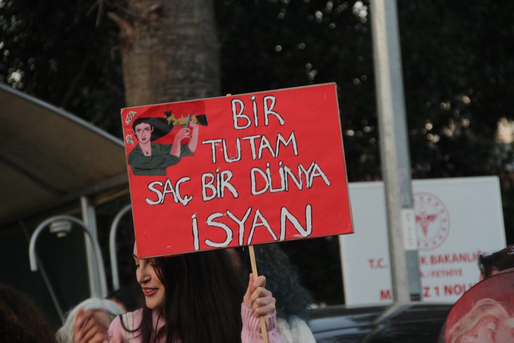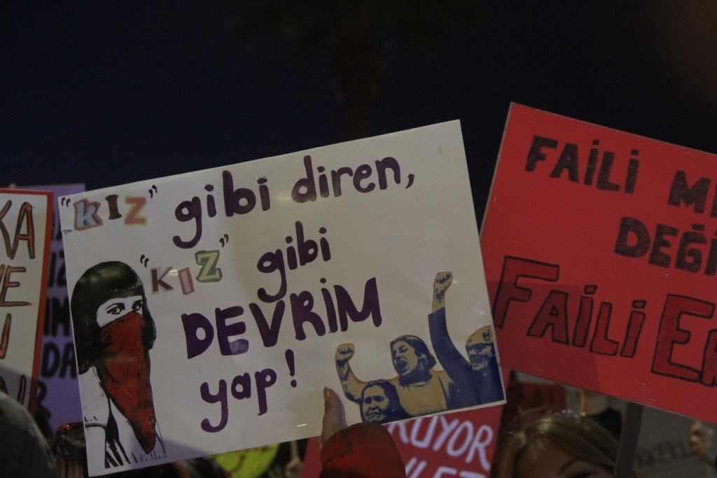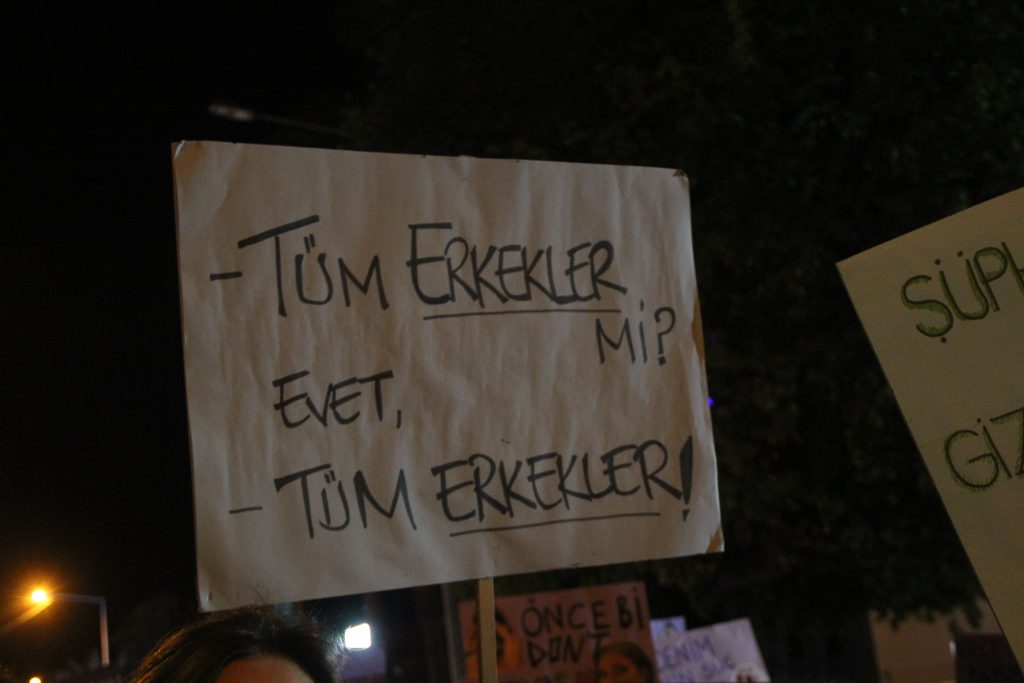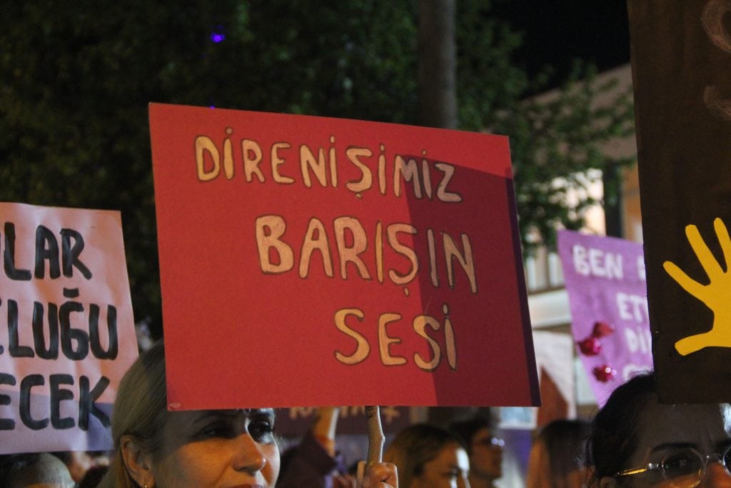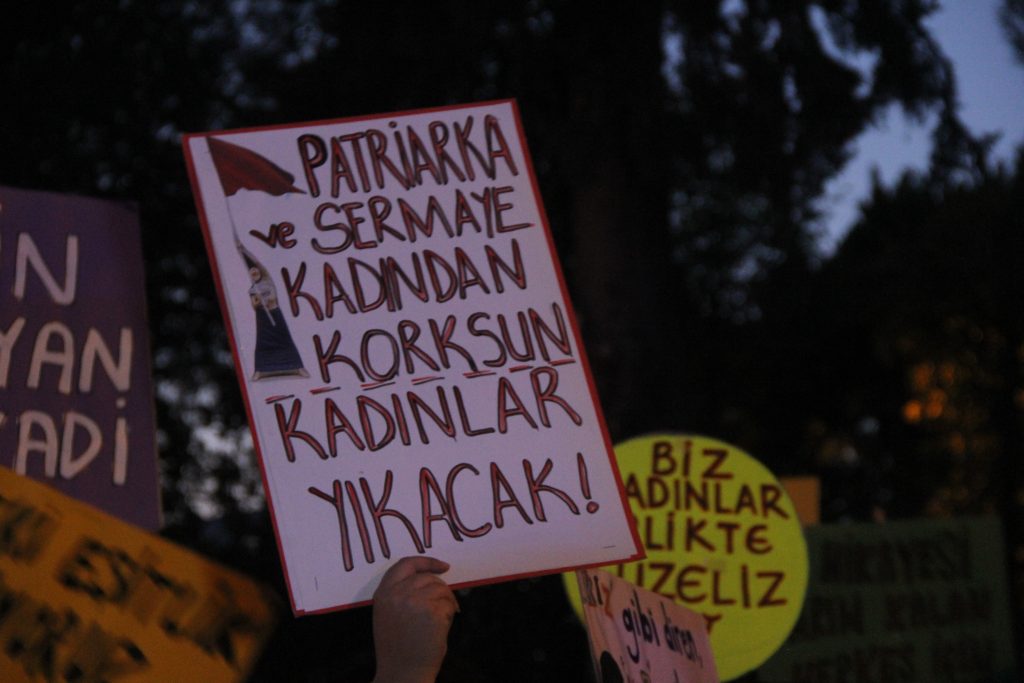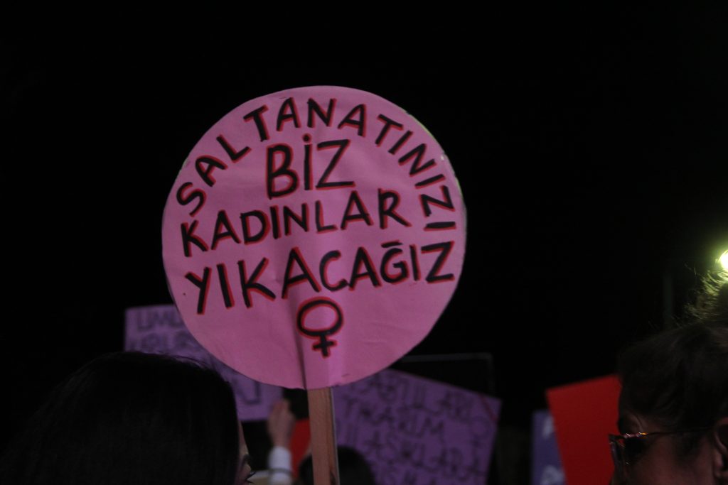 Türkiye’nin İstanbul Sözleşmesi’nden çekilmesi, kadınların yaşam hakkından bilinçli bir vazgeçiştir. Biz buradayız ve söylüyoruz: İstanbul Sözleşmesi’nden vazgeçmiyoruz! Hayatlarımızdan vazgeçmiyoruz!”