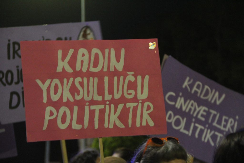 “Kadın yoksulluğu; boş buzdolabı, boş beslenme çantası, ödenmeyen kira, şiddet gördüğü evden çıkamayan kadının imkansızlığıdır. ‘İşten ilk kimi çıkaralım?’ sorusuna verilen net cevaptır. Bu düzen, kırılgan erkekliği yücelterek krizin yükünü kadınların sırtına bindiriyor.