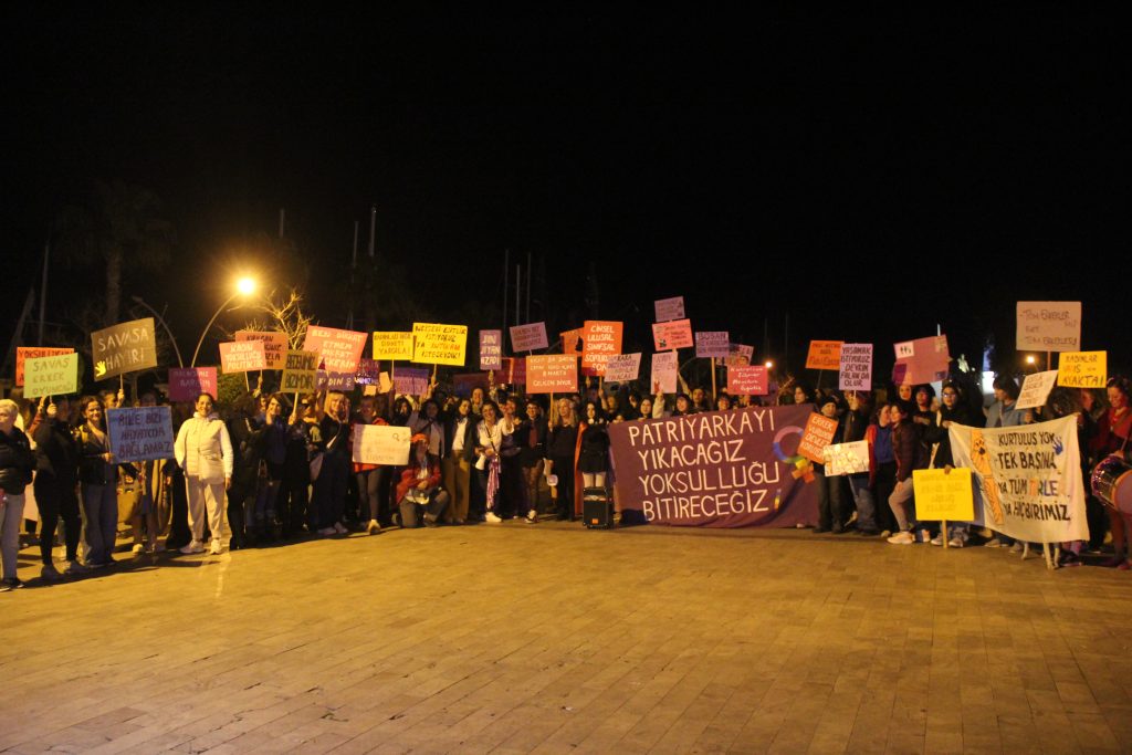 “Biz kadınlar bu 8 Mart’ta şunu söylüyoruz: Bütçeler bombalara değil, yaşama ayrılacak. Biz kadınlar savaş değil eşitlik istiyoruz. Yaşasın uluslararası kadın mücadelesi!”