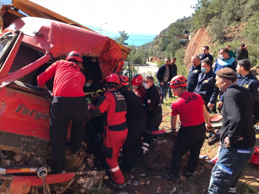 Muğla’nın Fethiye ilçesinde yer alan Fethiye-Ölüdeniz kara yolunda Hilmi Akmeşe yönetimindeki kamyon sürücünün hakimiyetini kaybetmesi sonucu yol kenarındaki kayalıklara çarptı. Kayalıklara çarpan kamyon devrilerek, yaklaşık 50 metre sürüklendi.
