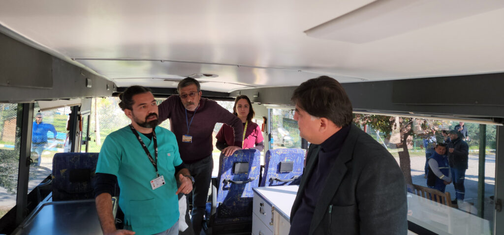 Veteriner hekim Ahmet Demir, “Vetbüs aracımız geldi. Belirlediğimiz alanlardaki sokak hayvanlarının paraziter ilaçlarını ve kontrollerini yapacağız. İhtiyacı olan hayvanlara müdahale edeceğiz .Aracımızda su sistemi, dolaplarımız, acil durumlar için alanlarımız var. Eğer bölgede hastalıklı bir hayvan görürsek, ilk müdahalesini burada yapıp, ardından barınağımızda daha iyi imkanlarda hizmet vermek istiyoruz. Vetbüs’te bizim ihtiyaçlarımız için her şey var” açıklamasını yaptı.