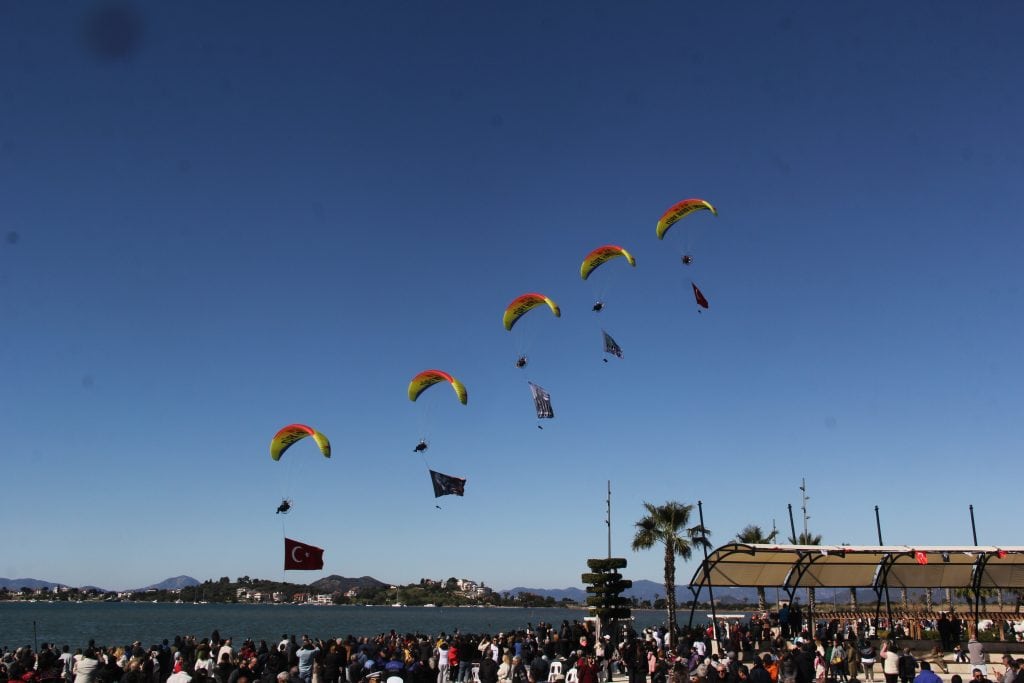 Konuşmaların ardından sonrası THK, paramotorlarla Fethiye Bey’e saygı uçuşu gerçekleştirdi. Paramotorlarda; Türk Bayrağı, Gazi Mustafa Kemal Atatürk’ün fotoğrafı, Şehit Fethi Bey’in fotoğrafı ve Fethiye Belediyesi’nin logosu taşındı.