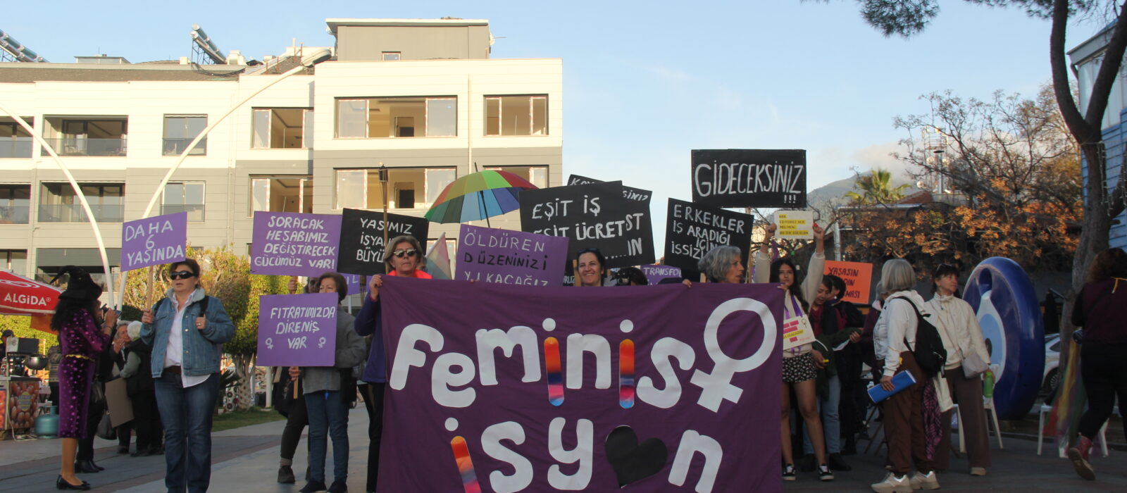Muğla’nın Fethiye ilçesinde Özer Olgun Kültür Merkezi önünde toplanan kadınlar Özgecan Anıtı’na yürüyerek, basın açıklaması gerçekleştirdi. Fethiye Belediyesi Özer Olgun Kültür Merkezi önünde 8 Mart Dünya Kadınlar Günü dolayısıyla saat 18.00’de toplanan kadınlar Özgecan Anıtı’na yürüyerek, burada bir basın açıklaması gerçekleştirdi. Açıklamayı Fethiye Kadın Danışma ve Dayanışma Derneği (FKDD) adına Dilek Çolak okudu. Açıklamada, “Bu … FKDD: Patriyarkayı başınıza yıkacağız okumayı sürdür