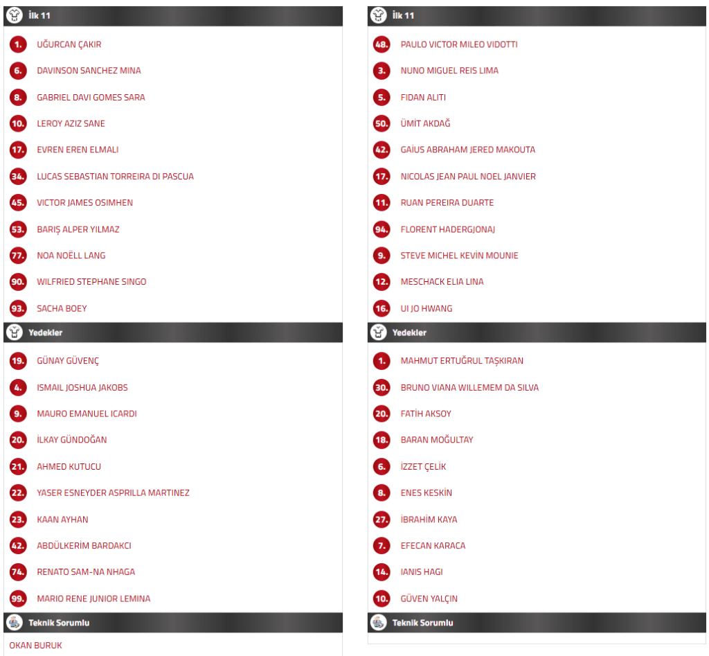 GALATASARAY – ALANYASPOR MAÇI İLK 11