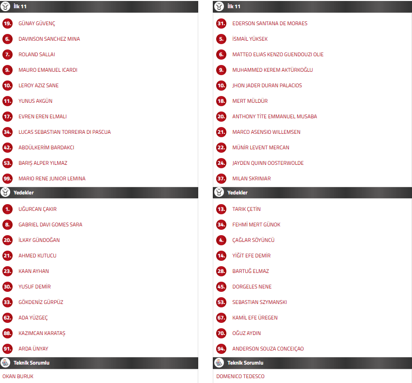Galatasaray’da Victor Osimhen ve Ismail Jakobs, milli takımlarında bulundukları için final karşılaşmasında forma giyemeyecek.