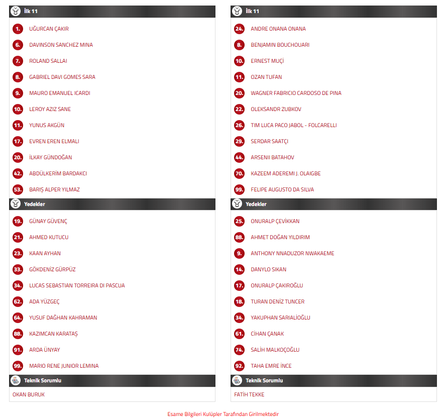 Yarı Final maçının başlamasına bir saat kala her iki takımın da ilk 11’leri belli oldu. İşte Galatasaray – Trabzonspor maçı ilk 11’leri: