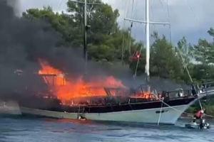 Muğla’nın Fethiye ilçesinde bulunan Göcek Mahallesi açıklarındaki bir teknede çıkan yangına müdahale devam ediyor. Muğla‘nın Fethiye ilçesinde bulunan Göcek Mahallesi açıklarında Yassıca Adaları mevkisindeki bir gulet teknede bugün (13 Ekim 2025) yangın çıktı. Yangını fark eden yurttaşların ihbarı üzerine, bölgeye sahil güvenlik ve deniz polisi ekipleri sevk edildi. Ekiplerin, yangına müdahalesi devam ediyor. TEKNE YANGINLARI … Göcek açıklarındaki teknede çıkan yangına müdahale devam ediyor okumayı sürdür