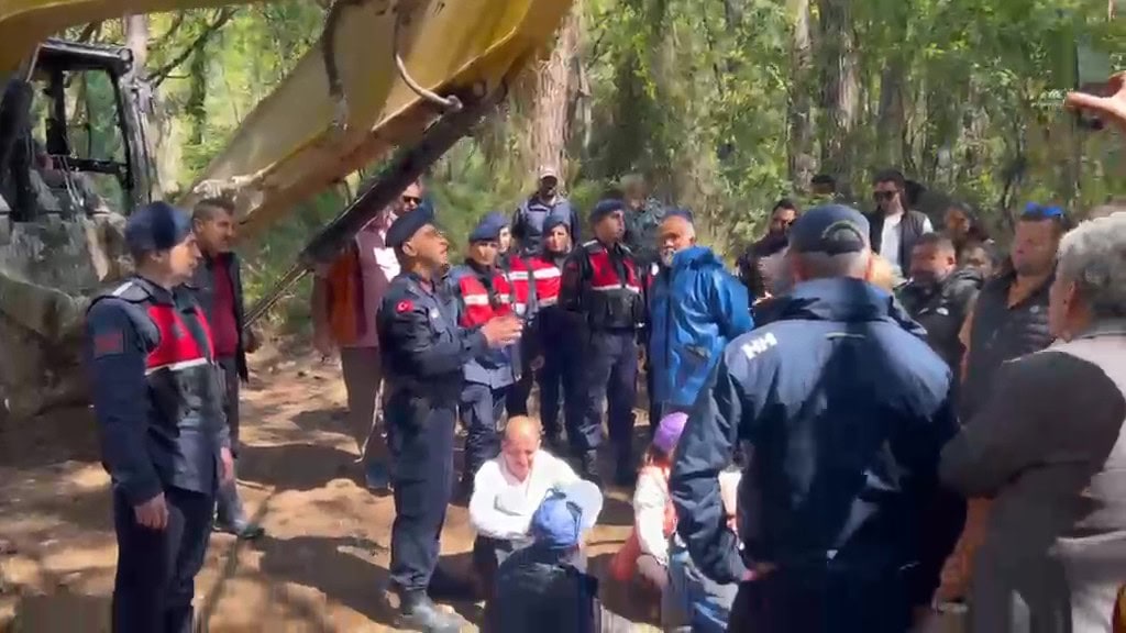 Çalışmanın durdurulmasını isteyen yurttaşların iş makinelerinin önüne gereçerek çalışmaya izin vermediği aktarıldı.