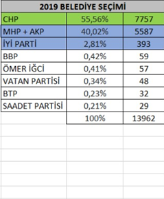 Datça Belediyesi, 2019 yerel seçim sonuçlarına göre şu anda CHP’nin elinde. 2019 seçimlerinde 17 bin 656 seçmen varmış Datça’da. Bunların 14 bin 451’ı oy kullanmış. Toplam seçmen sayısının yüzde 21’i yani 3 bin 694 seçmen oy kullanmamış geçen seçimlerde. CHP, yüzde 56’sını toplamış kullanılan geçerli oyların, 7 bin 757 oy almış. En yakın takipçisi MHP ve AKP ittifakı, oyların yüzde 40’ını yani 5 bin 587 oy almış. İYİ Parti, o sıralarda daha yeni, 393 oy almış. HDP, CHP’yi desteklemiş. TİP ise henüz yok. Vatan Partisi, Saadeti, BBP’si falan toplasan 250-300 oy almış…