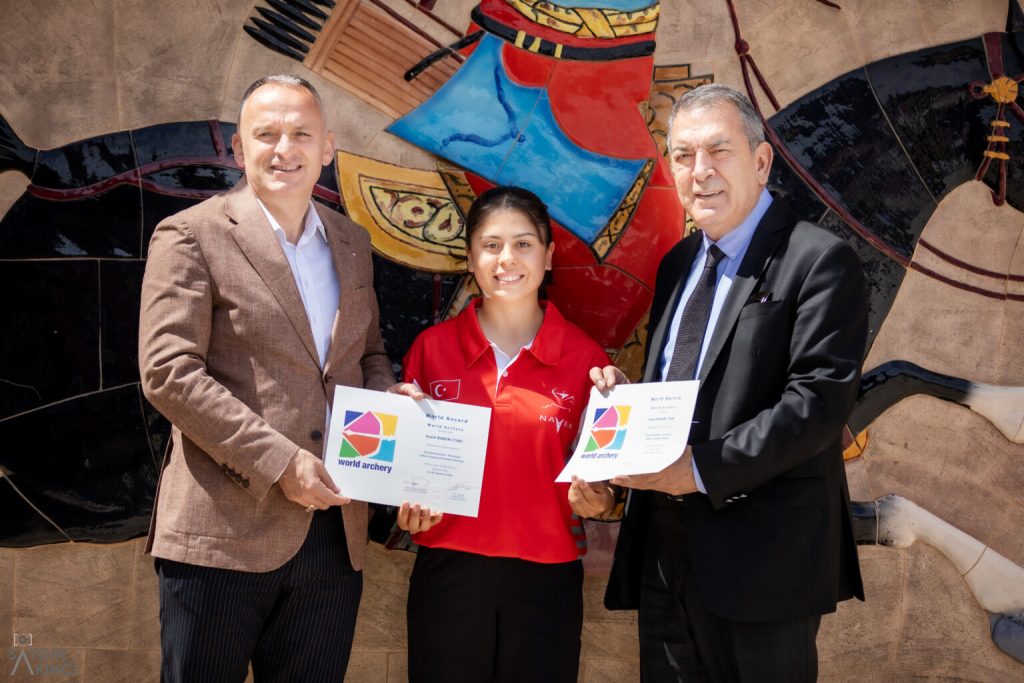 Burun’a rekor tasdik belgeleri Türkiye Okçuluk Federasyonu Başkanı Abdullah Topaloğlu ve Antalya Gençlik ve Spor İl Müdürü Yavuz Gürhan tarafından verildi.