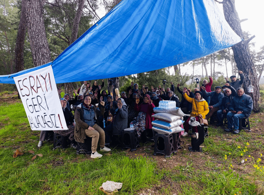 Bugün İkizköy Çevre Komitesi sosyal medya hesabından yapılan açıklamada şunlar söylendi: “Nöbetimiz sürüyor! Soğuk hava ve yoğun yağışa rağmen köyümüzü savunma mücadelemiz dayanışmayla sürüyor. Tüm dostlarımızı Karacahisar yol ayrımına, toprağımıza, zeytinlerimize, geleceğimize sahip çıkmaya çağırıyoruz! Esra’yı alacağız Akbelen’i vermeyeceğiz”