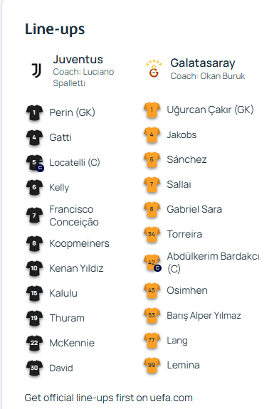 İlk maçta Juventus’u 5-2 mağlup eden sarı-kırmızılı ekip avantajlı skorla rövanşa çıktı. Bu nedenle Juventus – Galatasaray maçı ilk 11 tercihleri tur planı doğrultusunda belirlendi.