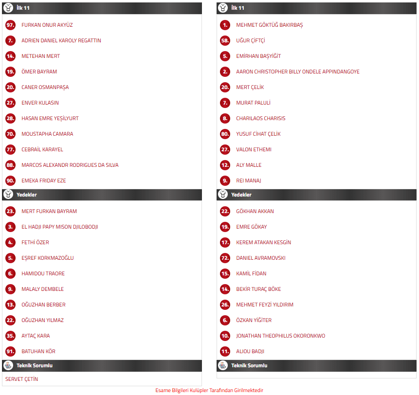Alt sıraları ilgilendiren mücadelede Sarıyerspor ile Sivasspor karşı karşıya geliyor. Yusuf Ziya Öniş Stadyumu’nda oynanacak karşılaşma öncesinde iki takımın ilk 11’leri ve maç kadroları futbolseverler tarafından takip ediliyor.