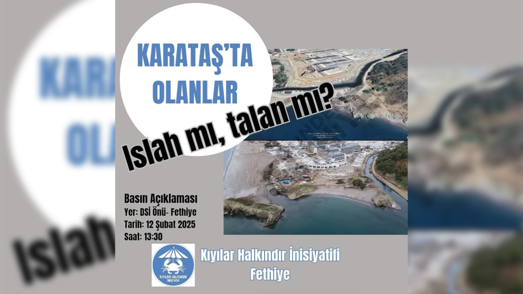 Kıyılar Halkındır Fethiye İnisiyatifi, “Karataş’ta olanlar ıslah mı talan mı?” sorusuyla yarın (12 Şubat) saat 13.30’da Fethiye’de Cahit Gündüz Caddesi’nde bulunan Devlet Su İşleri önünde yapacakları basın açıklaması için çağrıda bulundu.