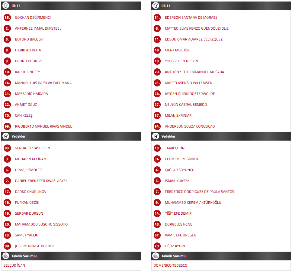Trendyol Süper Lig’in 20’nci haftasında oynanacak mücadelede sahaya çıkacak ilk 11’ler şu şekilde: