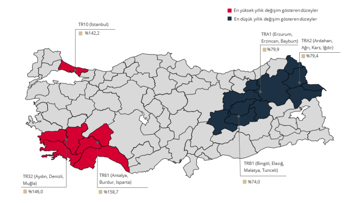 Muğla, Aydın, Denizli bölgesi; en yüksek yıllık değişim gösteren bölgeler arasına girerken, bu bölgede konut fiyatları nisan ayında yıllık bazda yüzde 146 oranında artış gösterdi.