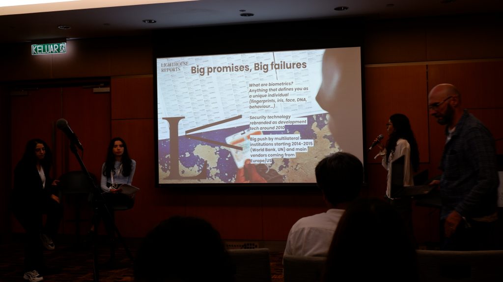 Hala Nouhad Nasreddine’in moderatörlüğünde gerçekleşen bu panelde, konuşmacılar Hajira Maryam ve Beatriz Ramalho da Silva, biyometrik verilerin nasıl ticari bir metaya dönüştüğünü inceledi. Khadija Sharife’nin katılamadığı oturumda, denetimsizce yayılan biyometrik teknolojilerin tedarik zincirleri ve bu milyar dolarlık endüstrinin ardındaki gizli anlaşmaları araştırma yöntemleri tartışıldı.