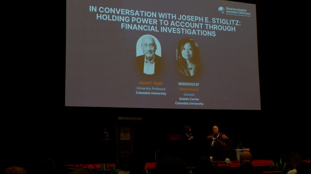 Nobel ödüllü ekonomi profesörü Joseph E. Stiglitz, gazeteci Sheila Coronel’in moderatörlüğünde gerçekleştirilen bir söyleşiye konuk oldu. Bu oturumda Stiglitz, ekonomik sistemlerin gizli mekanizmalarını deşifre etmede araştırmacı gazeteciliğin hayati bir “kamu yararı” olduğunu vurgulayarak, finansal şeffaflık ile demokratik hesap verebilirlik arasındaki kritik kesişimi ele aldı.