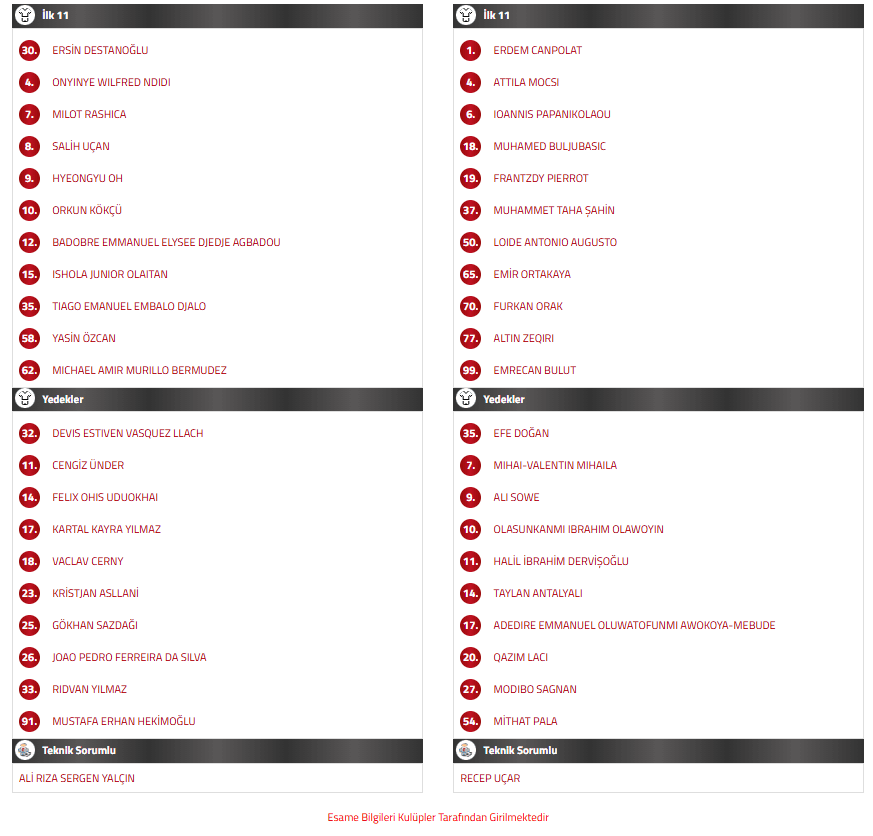 BEŞİKTAŞ – RİZESPOR MAÇI İLK 11