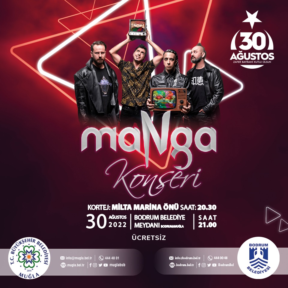 Muğla Büyükşehir Belediyesi ve Bodrum Belediyesi tarafından düzenlenen 30 Ağustos Zafer Bayramı kutlamaları kapsamında; maNga Bodrum’da sahne alacak.